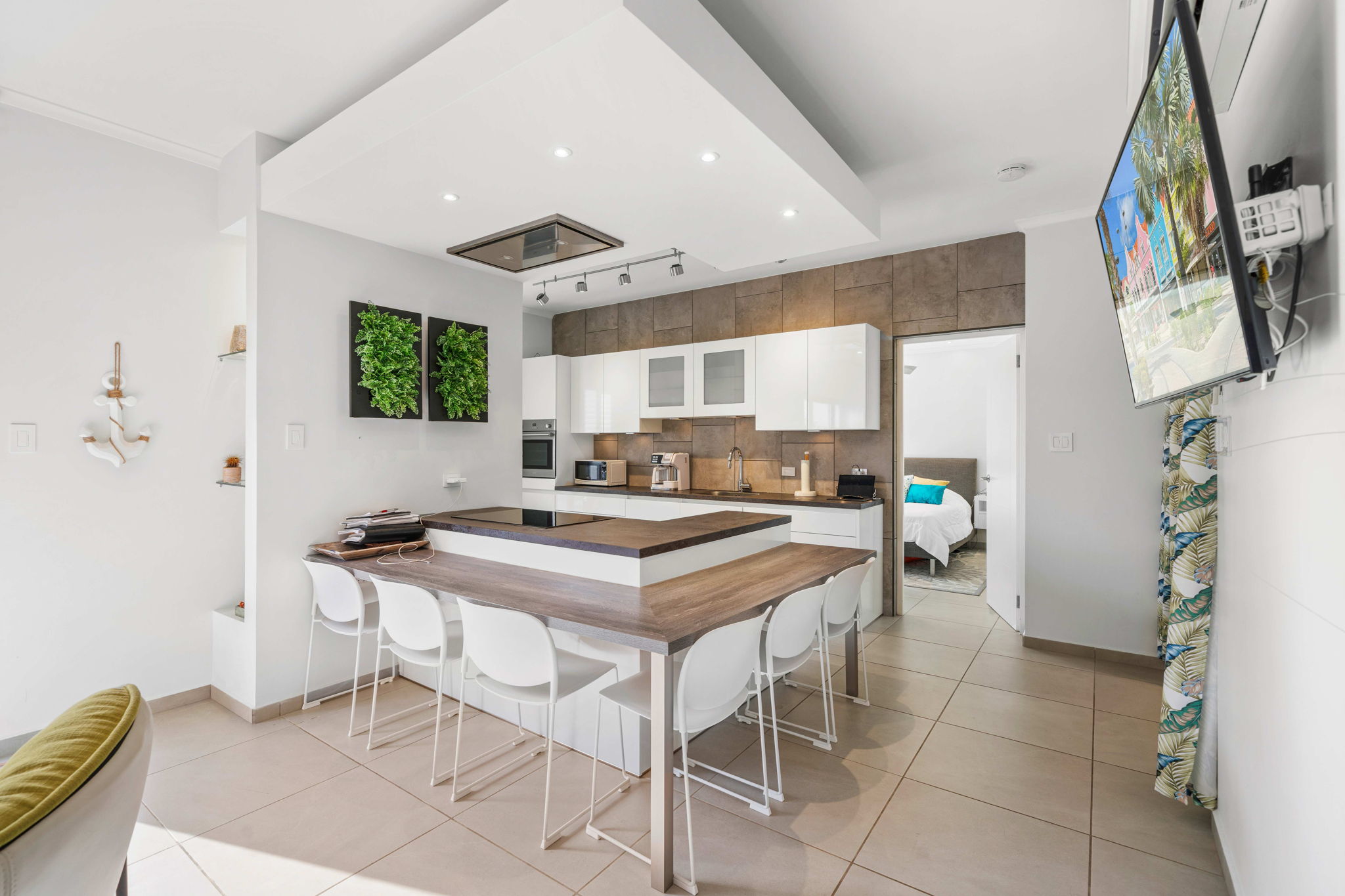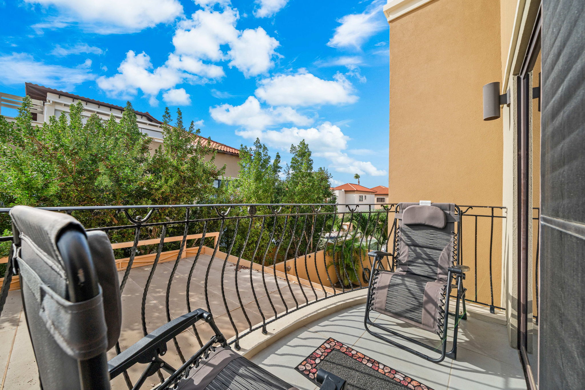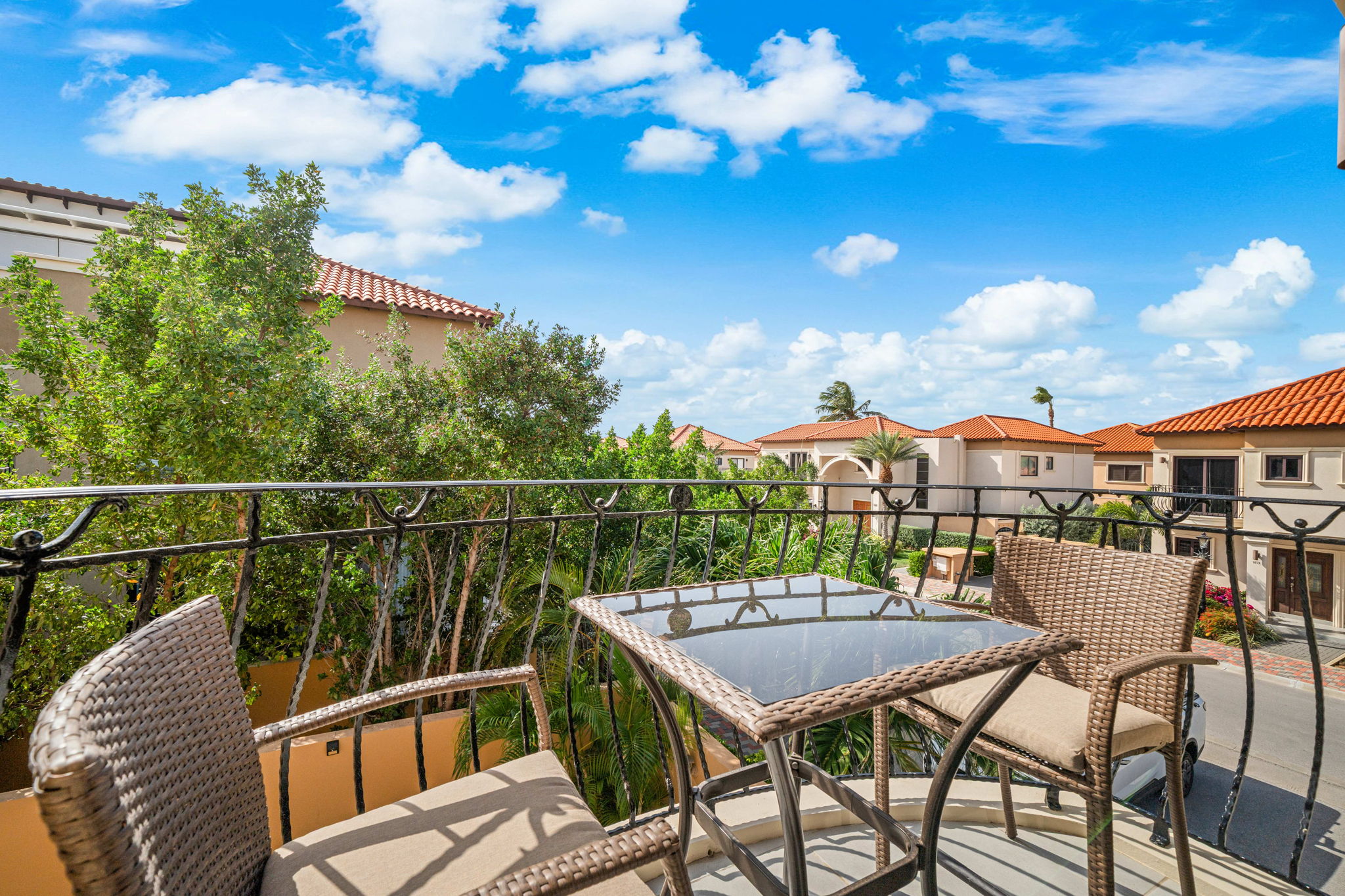 Step into the lower level and experience a bright, open-concept design where the spacious kitchen and living area flow effortlessly onto a private balcony—perfect for embracing Aruba’s indoor-outdoor lifestyle. This level also features the elegant primary suite with its own balcony, creating a peaceful retreat, along with two additional generously sized bedrooms that share a beautifully appointed bathroom.